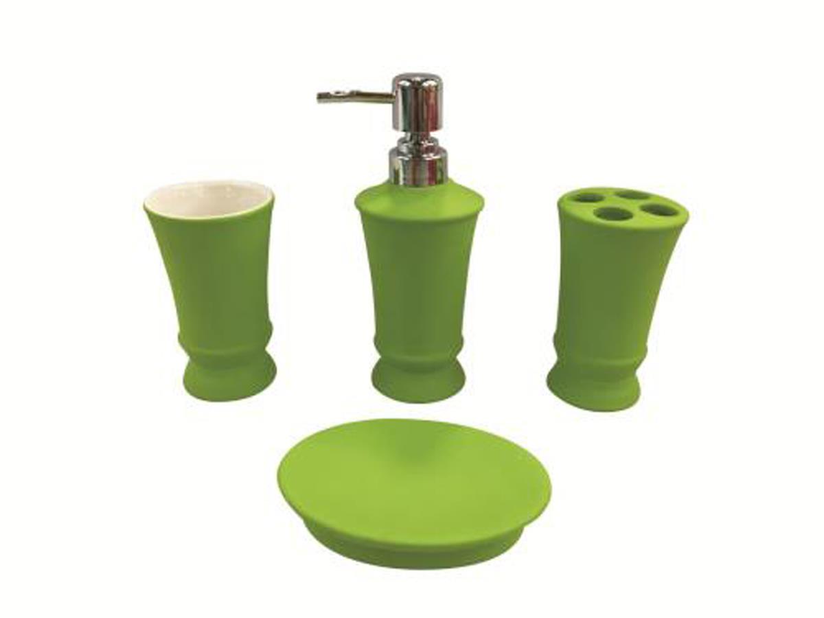 Bathroom accessories set, 4 pieces, green Renew the look of your interior decorations, with distinctive modern details, with this elegant bathroom accessory set, attractivelydesigned and in a charming green color that fits with various modern bathroom decorations, and with 4 different pieces that suit your needs and space.