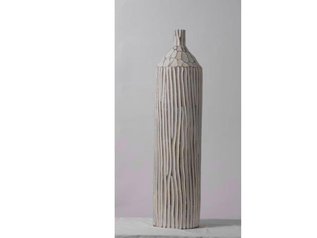 Polyresin vase, white striped Add a new aesthetic touch to your home's interior decorations, by purchasing this elegant vase, with a distinctive modern character and charming white color.It is characterized by a distinguished and elegant design that increases its attractiveness and beauty, with prominent lines details that increase its beauty and splendor. It requires a simple wipe clean to maintain its luster.
