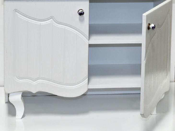 هذه القطعة جذّابة وسهلة التّنظيف ذات أرفف تخزين متعددة