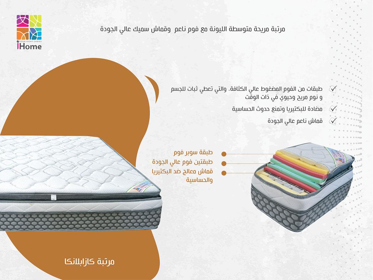 مرتبة كازبلانكا من المراتب المريحة و المتوسطة الليونة مع فوم ناعم وقماش سميك عالي الجودة