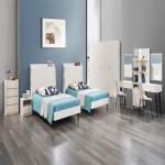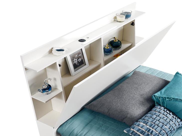 ( 2 سرير مفرد بظهر من الخشب البيج الجذاب المزود بأرفف داخلية و بإضاءة LED ومدخل شحن USB لخدمتك