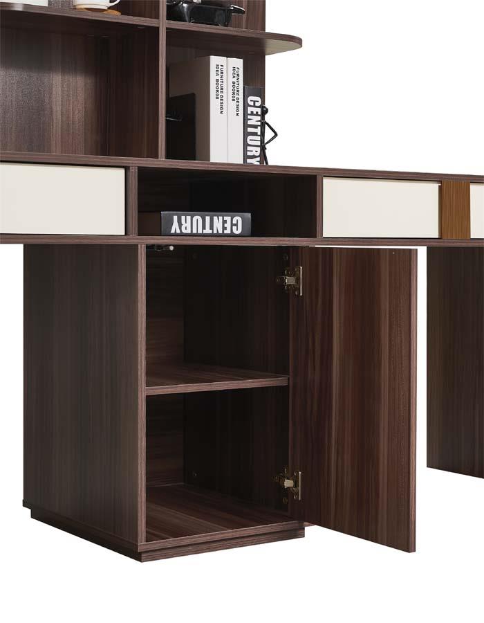 + 2 كرسي عملي مريح باللون البيج المميز + وحدة أدراج متعددة لتوفر لك مساحة تنظيم و تخزين واسعة تناسب احتياجك )