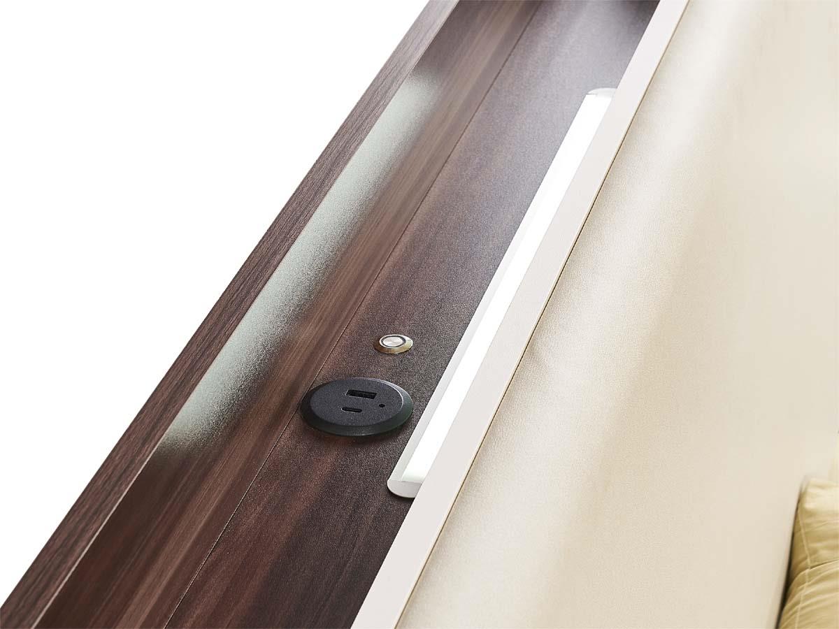 (2 سرير مفرد راقي بمسند ظهر مبطن بقماش البوليستر البيج المطفي الجذاب مع إضاءة ليد و مدخل لشاحن USB لخدمتك +