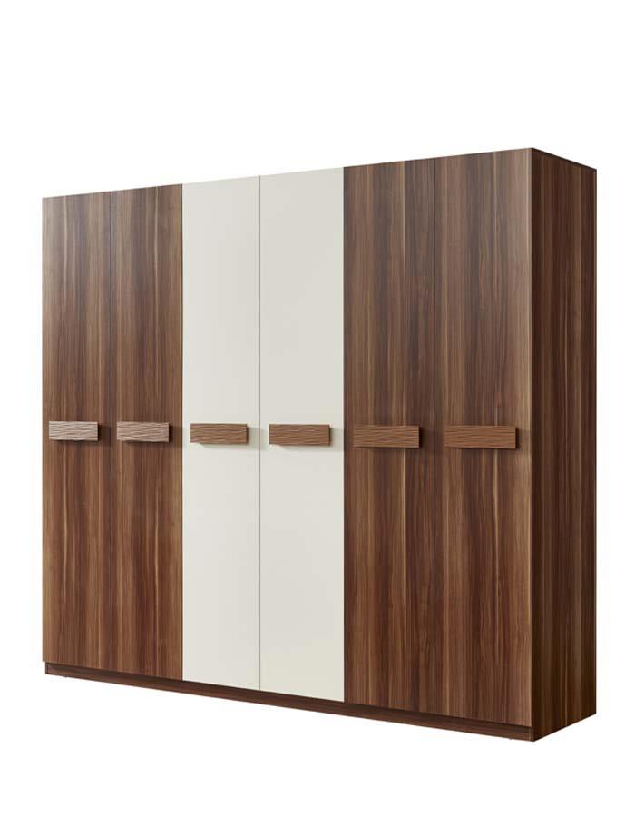 طاولة خدمة جانبية عملية بوحدة أدراج لمساحة تخزين إضافية + خزانة ثياب واسعة بــ 6 أبواب ذات أرفف داخلية متعددة لتستمتع بمساحة تنظيم