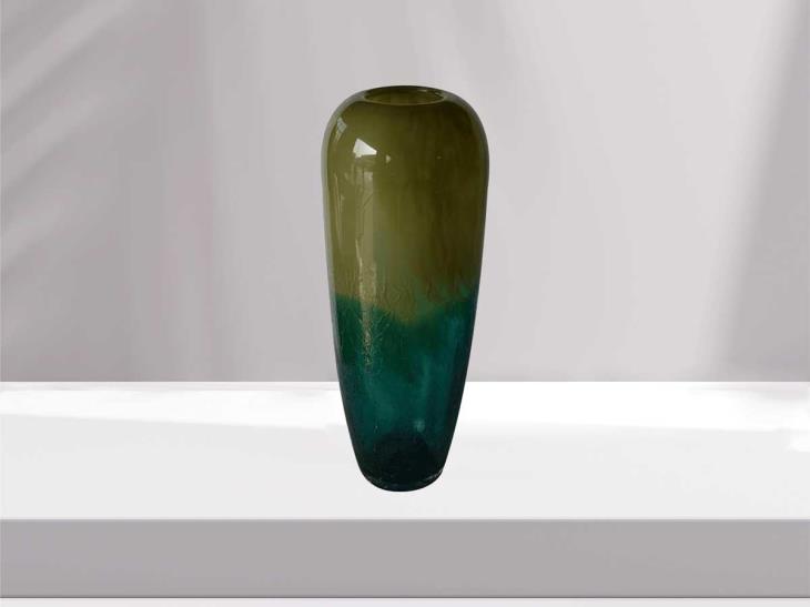 فازه بولوريزن شكل أسطواني بنقوش أزهار لون أورانج 35.5 سم