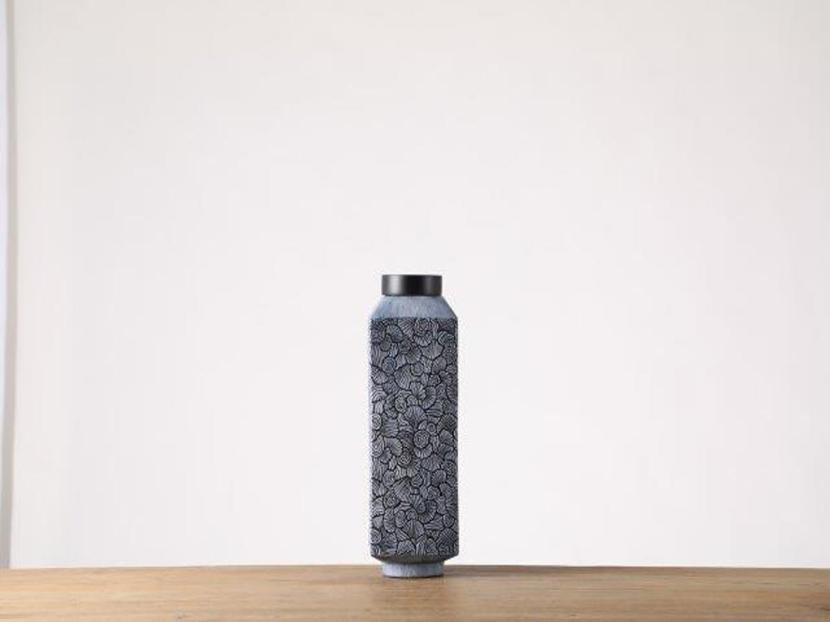 فازه بولوريزن شكل أسطواني بنقوش أزهار لون رمادي 45.5 سم