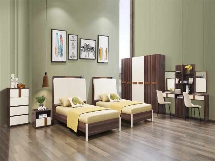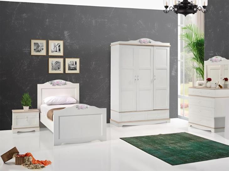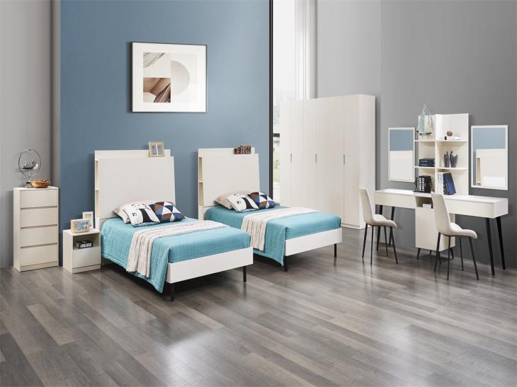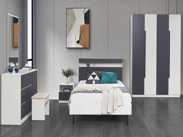 غرفة نوم هاندا مفرد 6 قطع سرير رمادي وأبيض