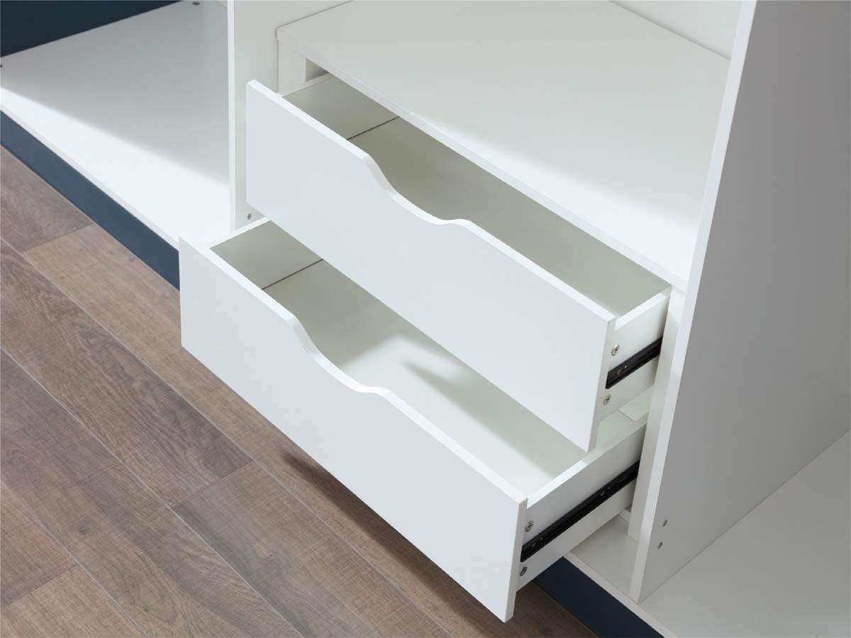 هذه المجموعة مصنوعة من أجود أنواع الخشب عالي المتانة لضمان القوة و التحمل , و بسماكة 25+15+5 ملم لضمان الاستدامة و التحمل , تتميز بلون أزرق داكن و أبيض خشبي ساحر لتتناسب مع مختلف ديكورات منزلك , كما أنها ذات تفاصيل ذهبية أنيقة تزيد من جمالها وروعتها , لتنعم بتجربة استخدام لا غنى عنها .