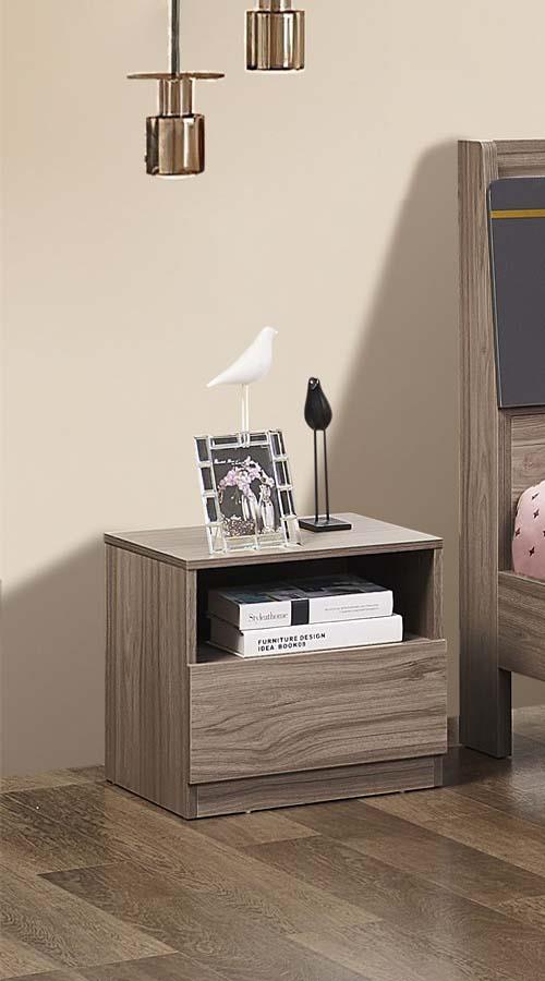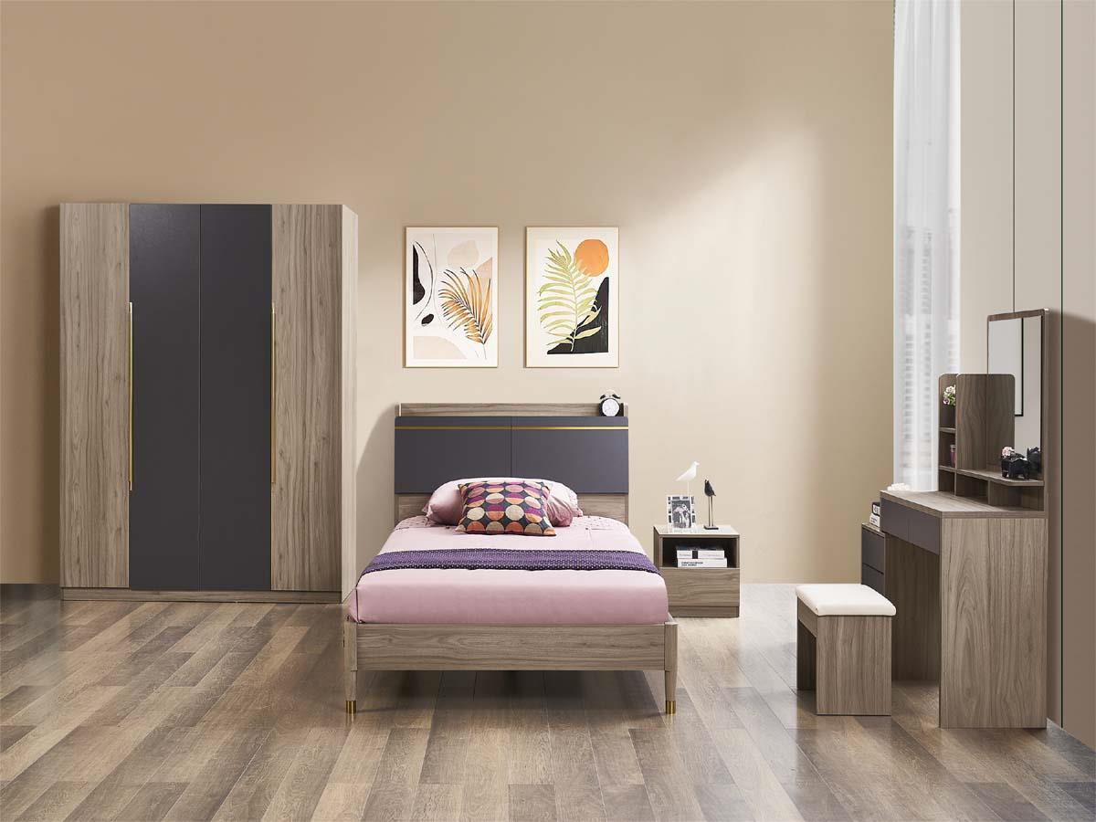 طقم غرفة نوم مفرده 7 قطع لون خشبي و رمادي