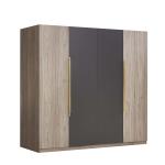 ( 2 سرير مفرد بظهر من الخشب الرمادي الجذاب + طاولة خدمة جانبية بوحدة أدراج لخدمتك + خزانة ثياب بــ 4 أبواب ذات أرفف داخلية لمساحة تخزين واسعة