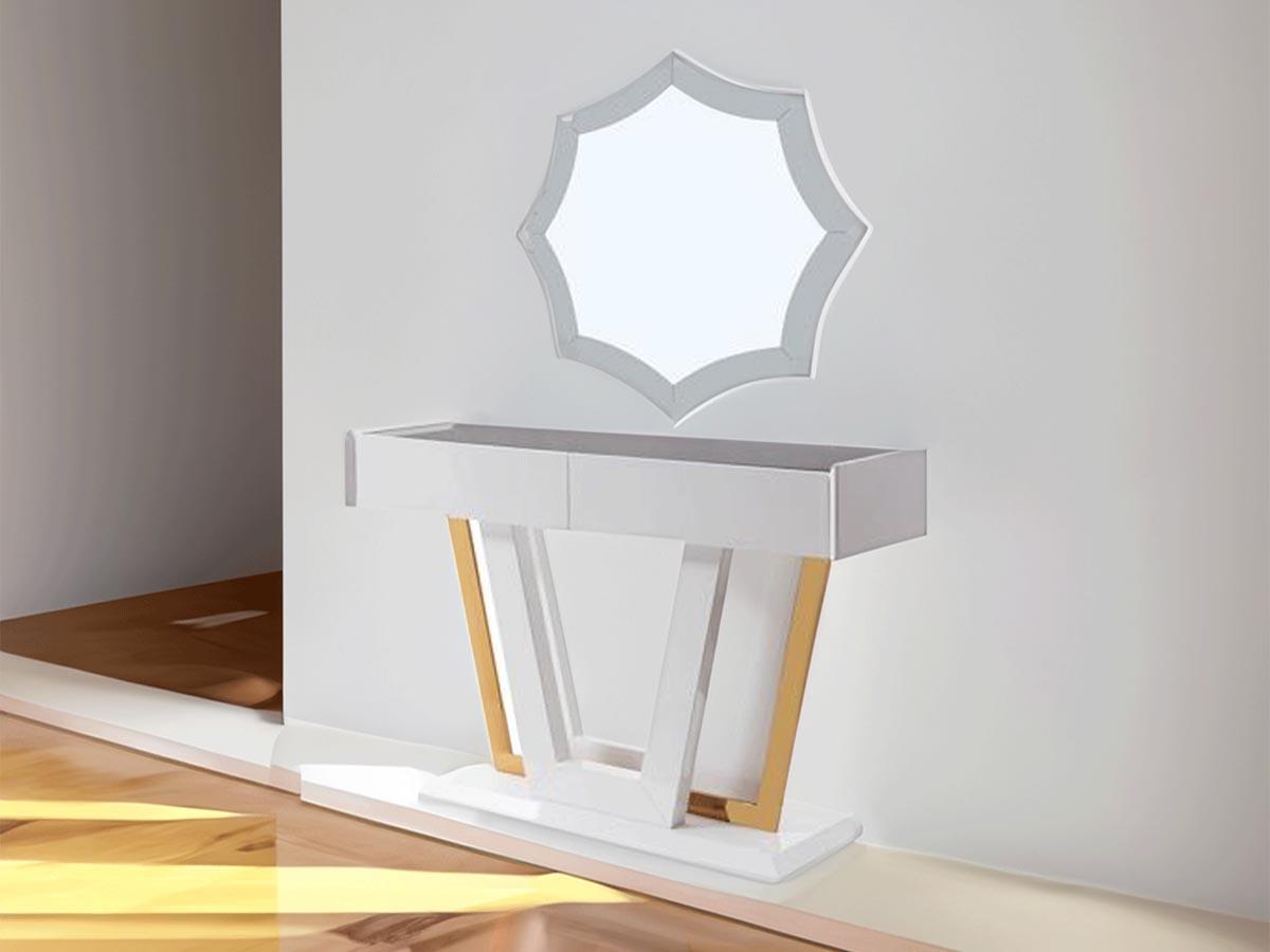 طاولة كونسول بمرآة لون أبيض وذهبي