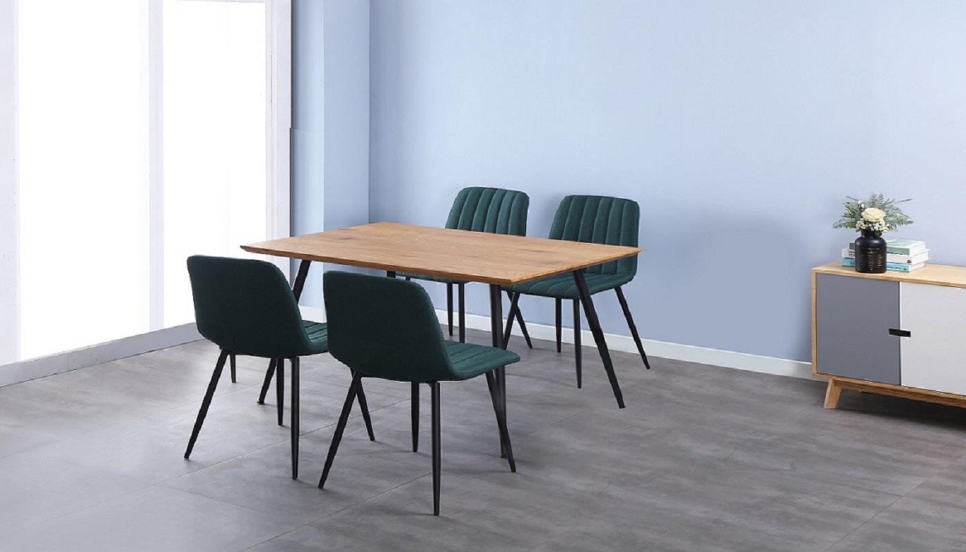 المكونة من 4 كراسي فاخرة , مصممة بمظهر قماشي أنيق باللون الأخضر الجذاب ، بتصميم عصري أنيق وسطح خشبي مميز