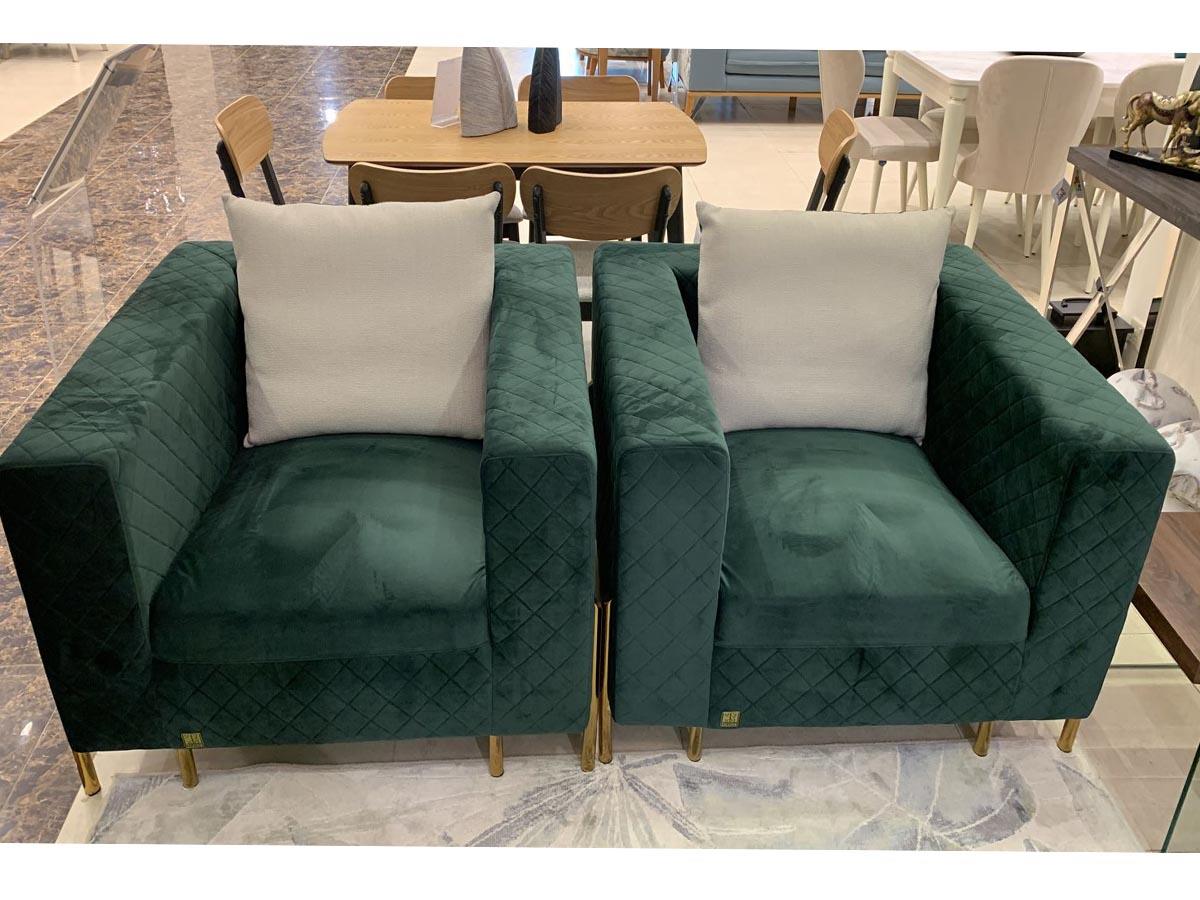 Sofa set 7 people, green color Distinguish your home with this elegant and luxurious set of 4 distinctive pieces(Elegant triple sofa + comfortable double sofa + 2 attractive single chairs)Designed in a modern and elegant shape, in a charming green color, with high golden legs to ensure ease of transportation and movement, and made of the finest materials, and the best types of luxurious velvet fabrics to ensure durability, sustainability and elegance, a different seating experience with a luxurious modern character