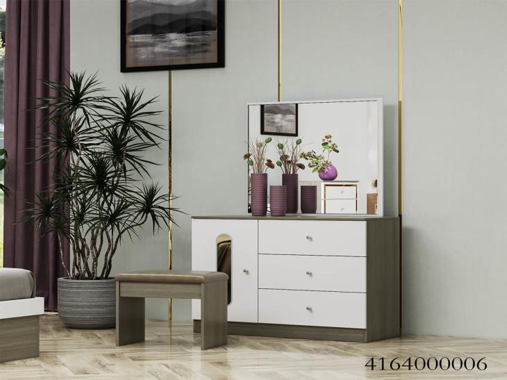 طاولة تزيين مميزة مع مرآة طولية تناسب احتياجك + كرسي جلوس جذاب ومريح+ ووحدة أدراج لمساحة تخزين أوسع
