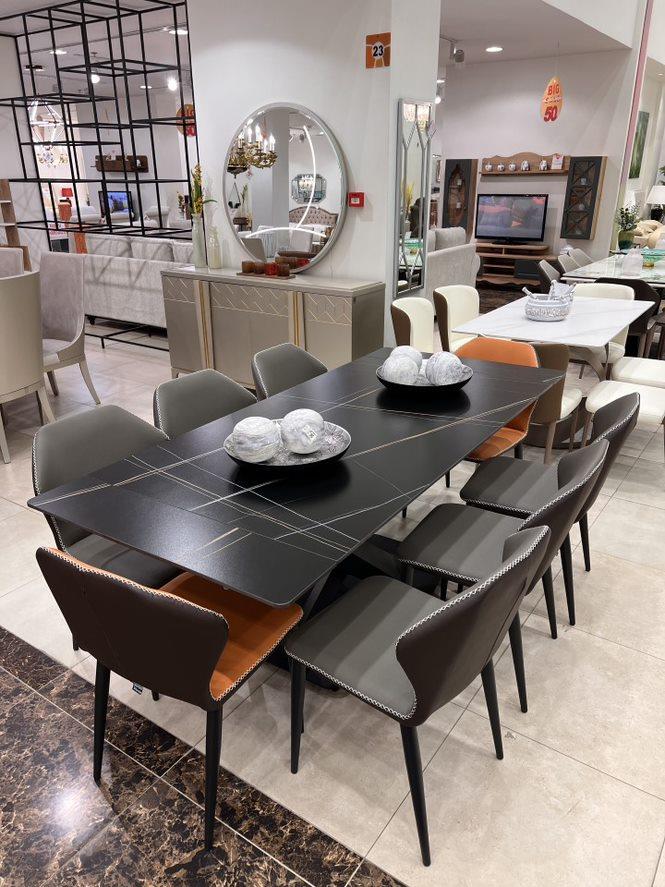 عزز مظهر منزلك بلمسة أنيقة تعكس رقي اختياراتك، وأضف لمسة ساحرة إلى غرفة طعامك من خلال شراء طاولة الطعام الأنيقة المكونة من 8 كراسي فاخرة، مصممة بمظهر أنيق ولونين مختلفين بين الرمادي الأنيق والاورانج الجذاب، بتصميم عصري ساحر وطاولة بسطح أسود أنيق ومميز، تتمتع بخصائص مقاومة للخدش والبقع مما يزيد من جاذبيتها ويعزز متانتها مصنوعة من مواد عالية الجودة لضمان القوة والمتانة، مصممة بأسلوب عصري وشكل جميل لتجربة مستخدم أنيقة لا مثيل لها.