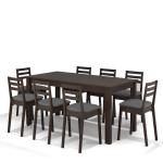 باقتناء طاولة الطعام الأنيقة هذه المكونة من 8 كراسي فاخرة , مصممة بمظهر قماشي بلون رمادي أنيق وجذاب ، بتصميم عصري فاتن وسطح خشبي بني مميز