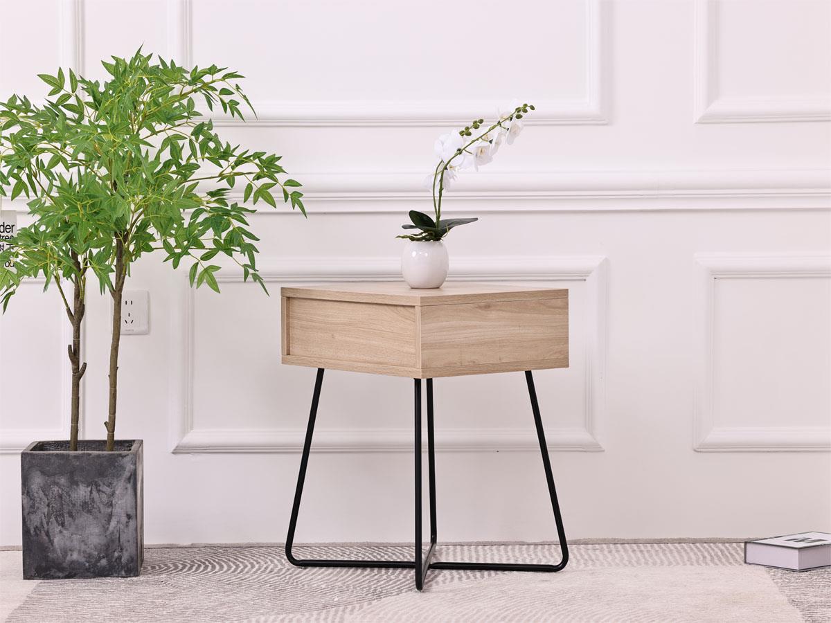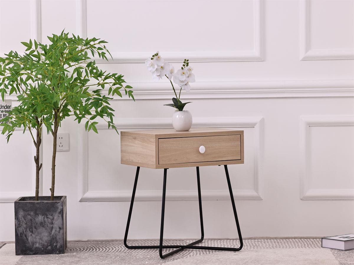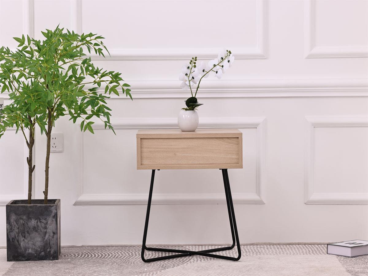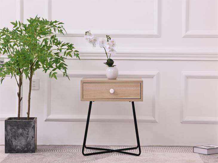 طاولة جانبية مع درج بلون الخشب الفاتح