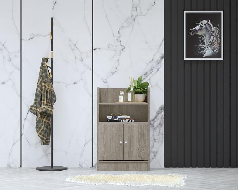 Cabinet with wooden shelves Add a touch of beauty and elegance to your home through this wonderful wardrobe with a distinctive practical design and elegant wood color. It provides you with ample storage and organization space according to your needs and space, designed in an attractive modern style, to add a striking look to your living room.