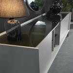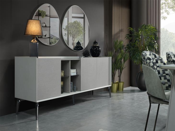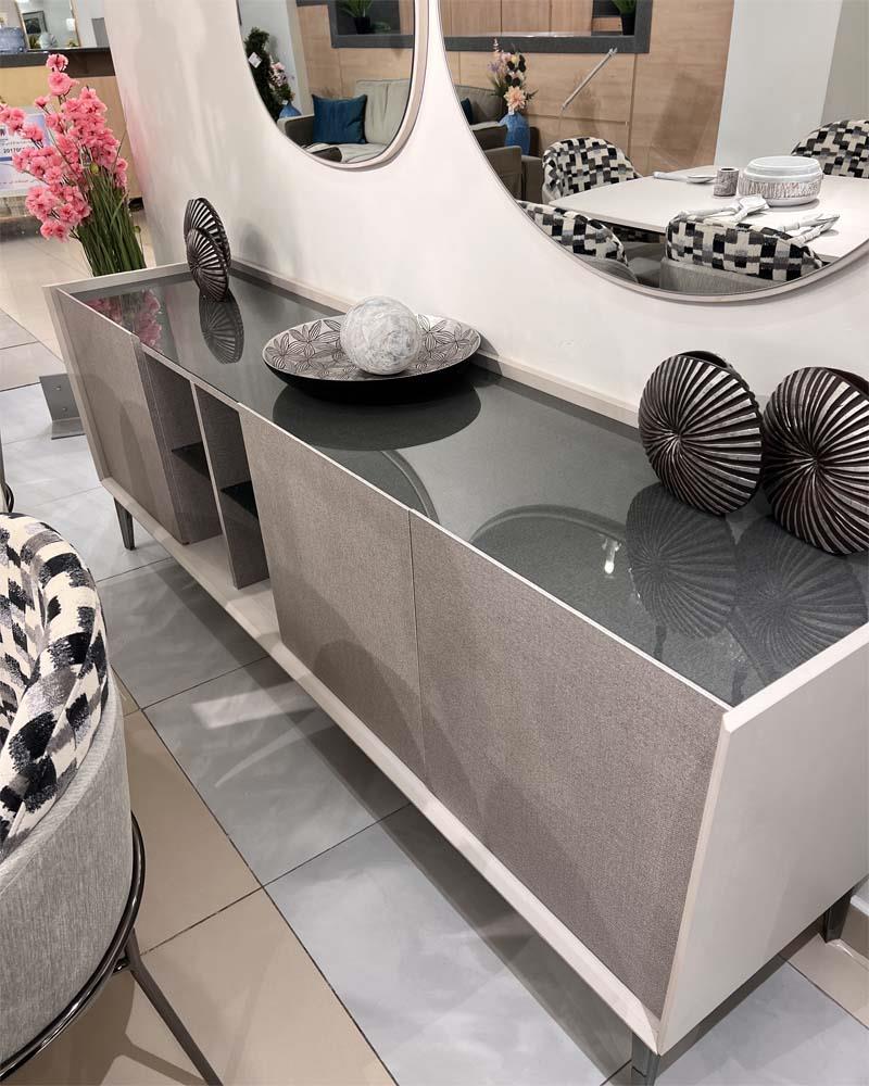وروعتها بالإضافة إلى كونسول خشبي مميز رمادي بطابع عصري فريد ويتميز بالقوة والمتانة ووحدات تخزين متعددة لتناسب مستلزماتك واحتياجاتك ,