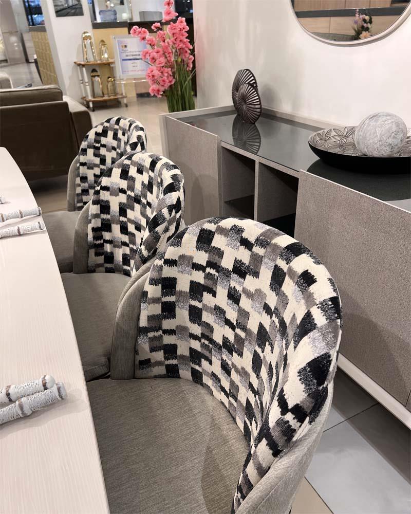 و الفريدة ، المكونة من 8 كراسي مميزة ذات اللون رمادي أنيق وتفاصيل من نقوش جذابة تزيد من جمالها