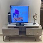 لدعم التلفزيون بشكل جمالي وأنيق , مصمّمة بطابع جذّاب ومميز , ولون رمادى ملفت ,