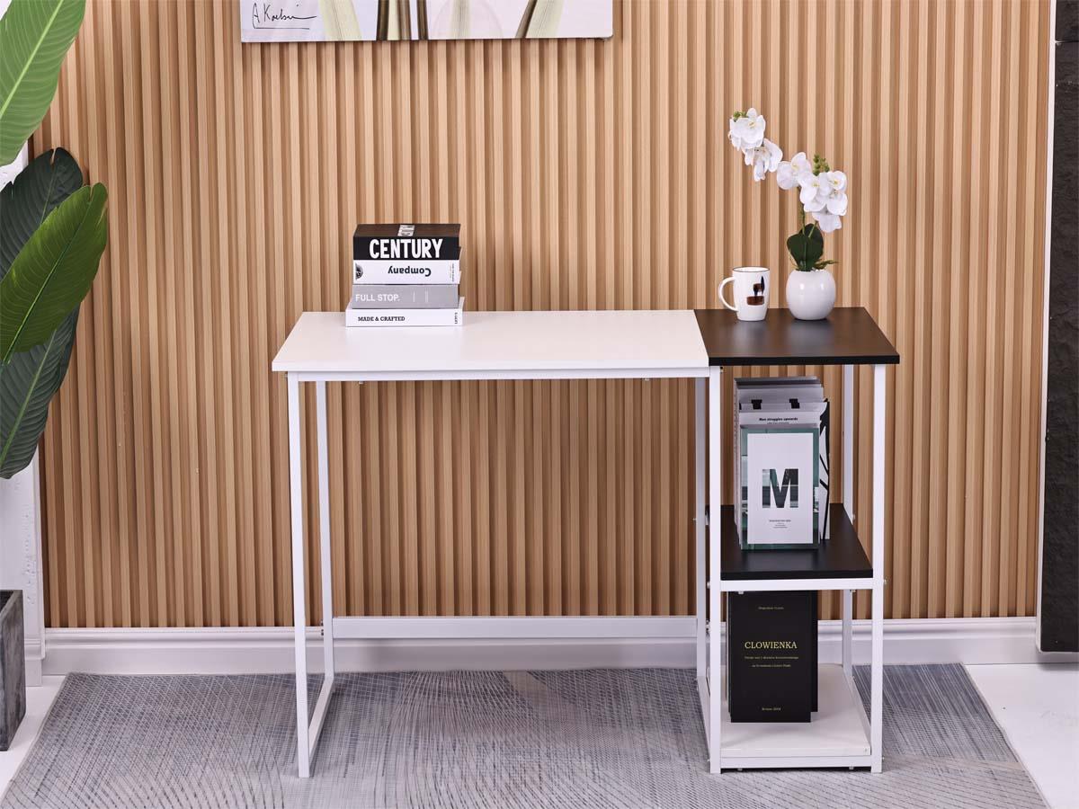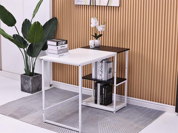 مكتب خشبي عصري بتصميم مبتكر وأنيق متعدد الاستعمالات وأرفف تخزين مكشوفة