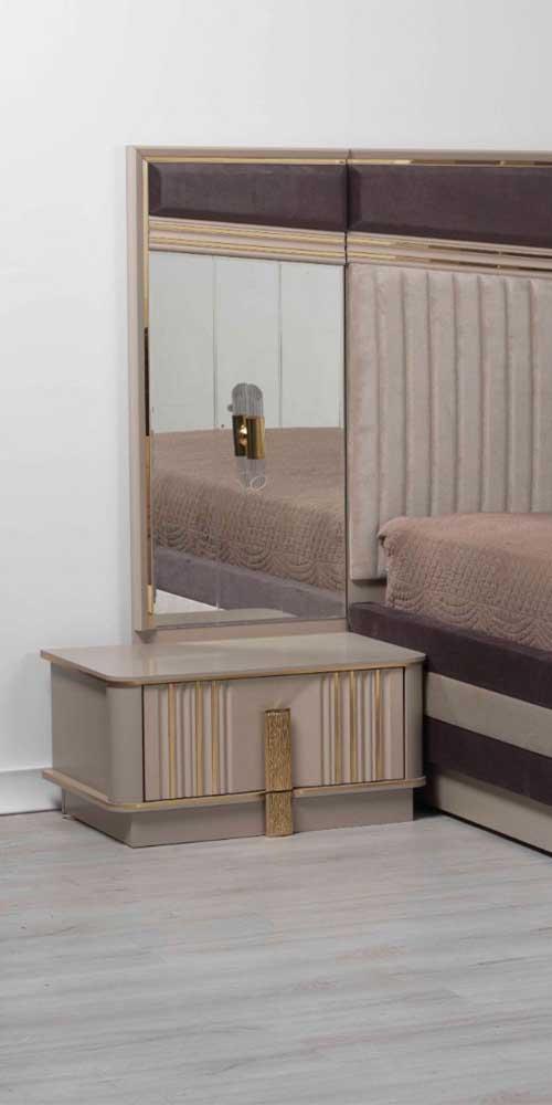 سرير مزدوج فاخر مع خاصية التخزين الإضافية ولوح أمامي مزود بمرايا أنيقة و إضاءة