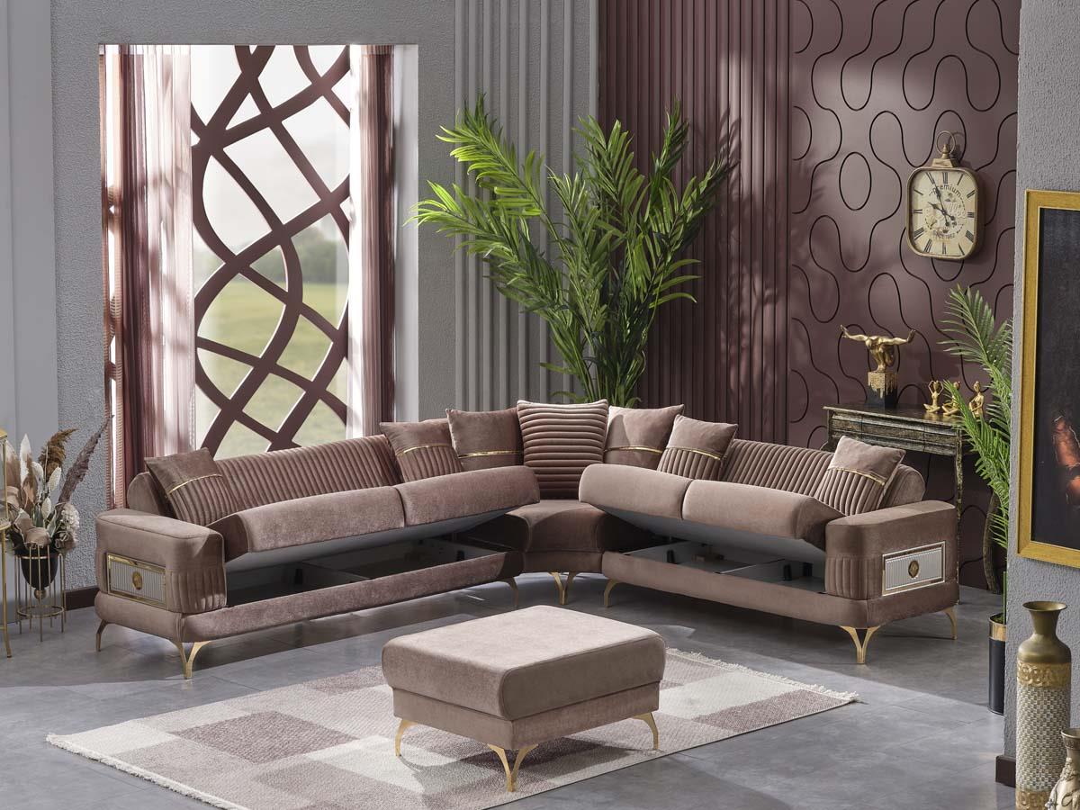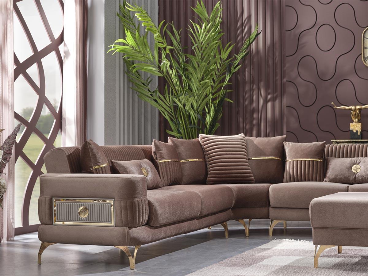 طقم كنب زاوية أسبندوس 4 قطع بني غامق