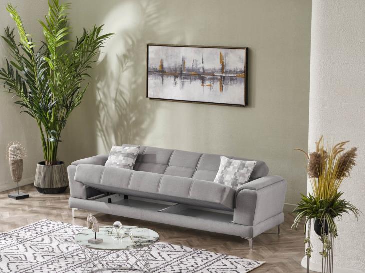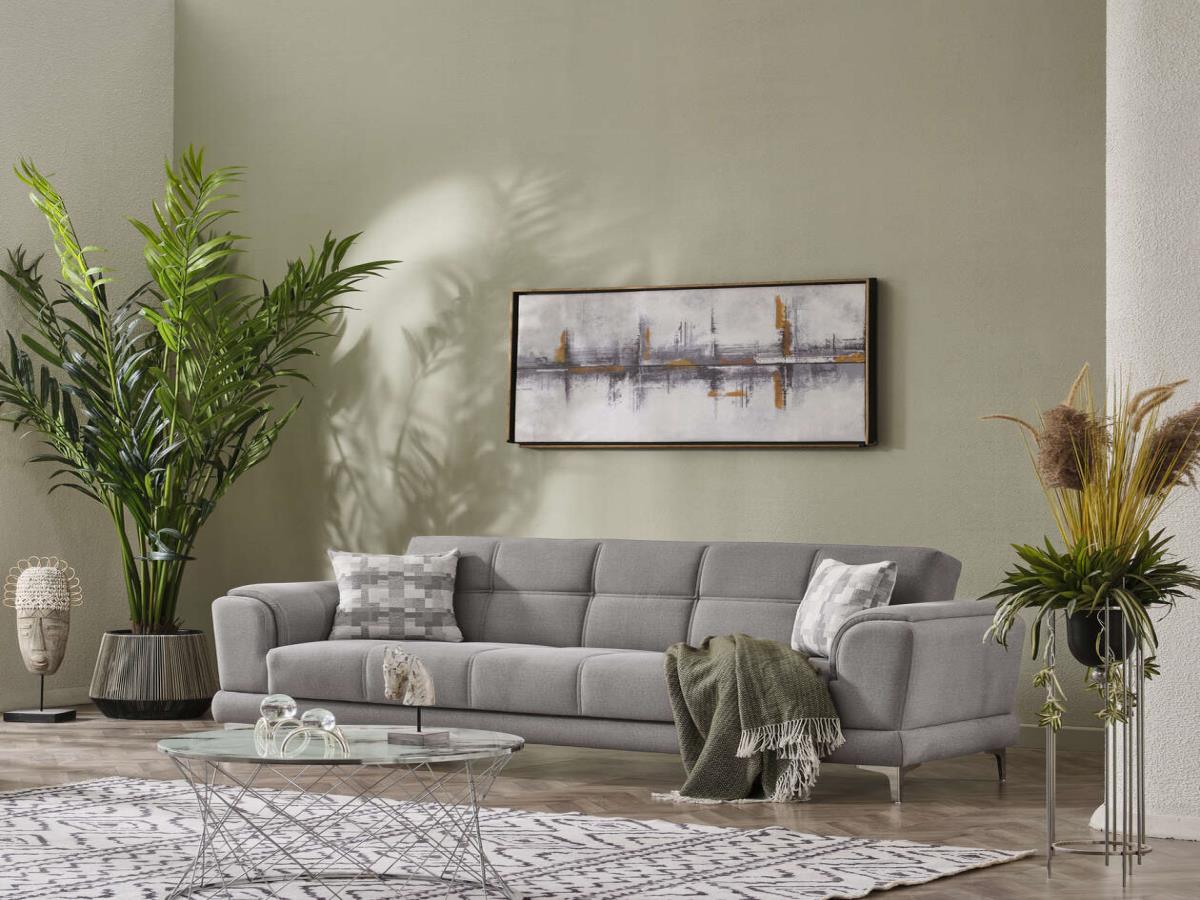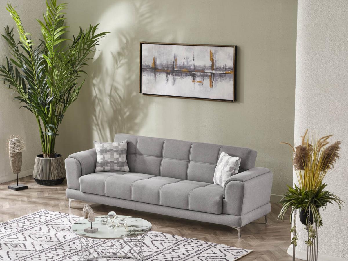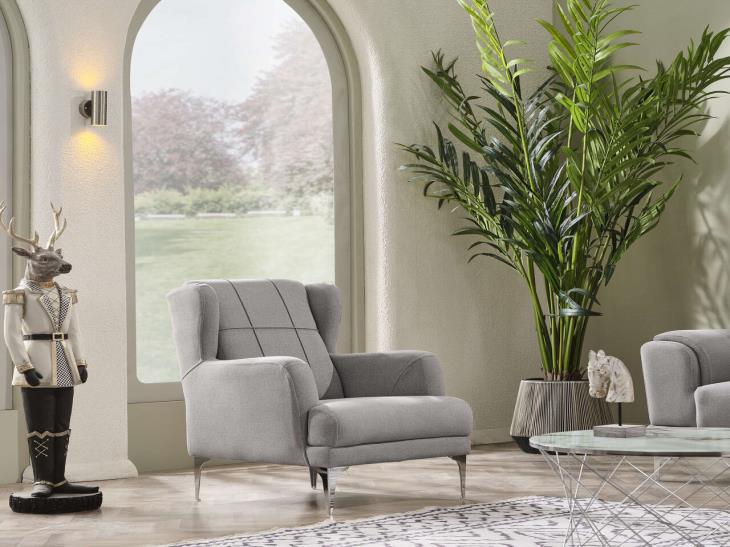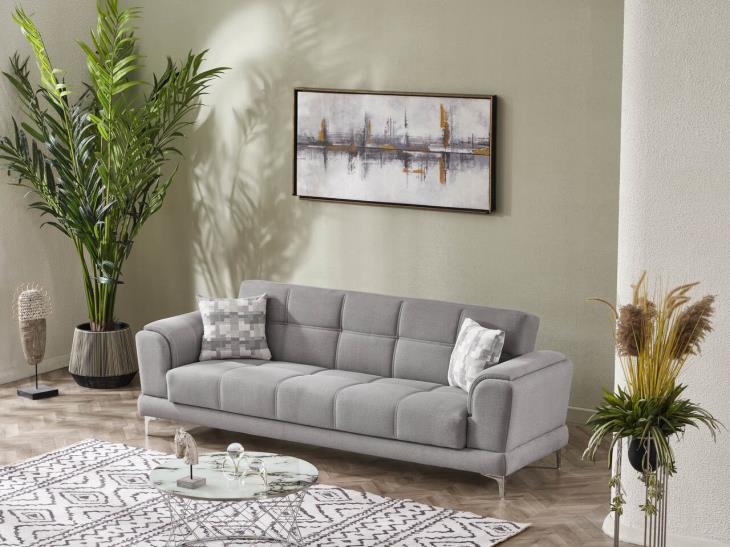 هذه المجموعة مصنوعة من لوح الخشب الصناعي المضغوط و المتين عالي الجودة و بحشو الإسفنج الرغوي بسماكة تصل الى 28 DNC لضمان القوة و التحمل , كما أنها منسوجة بأفضل أنواع القطن الصناعي فائق النعومة لضمان الراحة و المتانة و الاستدامة , تتميز بتصميم عصري جذاب و باللون الرمادي الفاتح الفاتن , تأتي بأرجل من البلاستيك و الكروم المتين لضمان القوة و الثبات و سهولة النقل و التحريك , قطعة عصرية مميزة تناسب منزلك و مساحتك , لتجربة استخدام تدوم طويلاَ .