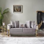 This set is made of durable compressed wood board and foam filling from high-quality soft sponge with a thickness of up to 28 DNC to ensure durability and endurance, and woven with the finest types of super soft synthetic cotton for your comfort while sitting, characterized by an elegant modern design and in a striking gray color, comes with metal legs and details in a sophisticated gold color to increase its beauty and splendor, and to ensure ease of transportation and movement, a practical, elegant piece that suits your taste and space, to enjoy a unique user experience Similar to it.