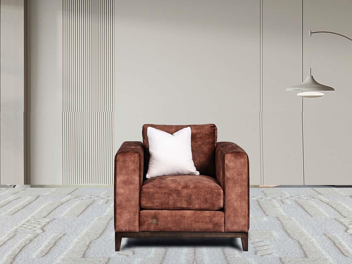 ضع لمسة مميزة في منزلك , وجدد من مظهر غرفة جلوسك , باختيارك لهذه الكنبة المفردة الأنيقة , ذات التصميم العصري الملفت باللون البني الجذاب , مصنوعة من لوح الخشب الرقائقي عالي المتانة , و خشب الاوكاليبتوس عالي الجودة , و حشو الإسفنج الرغوي بسماكة تصل الى 35 لضمان الاستدامة و التحمل ,
