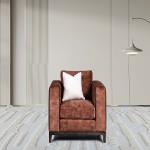 Put a distinctive touch in your home, and renew the look of your living room, by choosing this elegant single sofa, with a striking modern design in an attractive brown color, made of high-strength plywood, high-quality eucalyptus wood, and foam sponge filling with a thickness of up to 35 to ensure sustainability and durability,