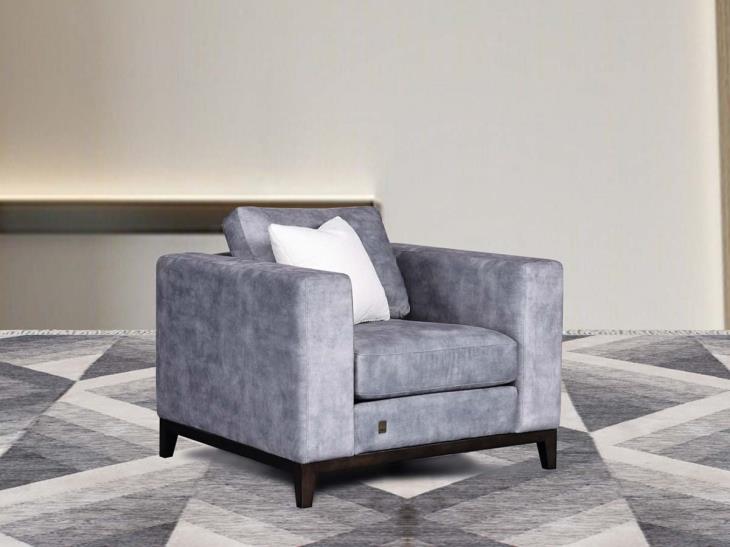 اجعل من منزلك مساحة من الجمال و الذوق الرفيع , بإضافة تفاصيل مميزة تزيد من روعته , وباختيارك لهذه الكنبة المفردة الراقية ذات الطابع العصري الفريد , بتصميم أوسع و عمق أكبر لتنعم بتجربة جلوس مريحة , مصنوعة من لوح الخشب الرقائقي عالي القوة و خشب الاوكاليبتوس المتين و بحشو الإسفنج الناعم بسماكة تصل الى35 لضمان الاستدامة و التحمل , كما أنها منسوجة من أفضل أنواع أقمشة المخمل الفاخر باللون الرمادي الملفت , تتميز بأرجل خشبية أنيقة تزيد من جمالها , و لضمان القوة و سهولة النقل و التحريك , قطعة فاخرة تناسب ذوقك و مساحتك .