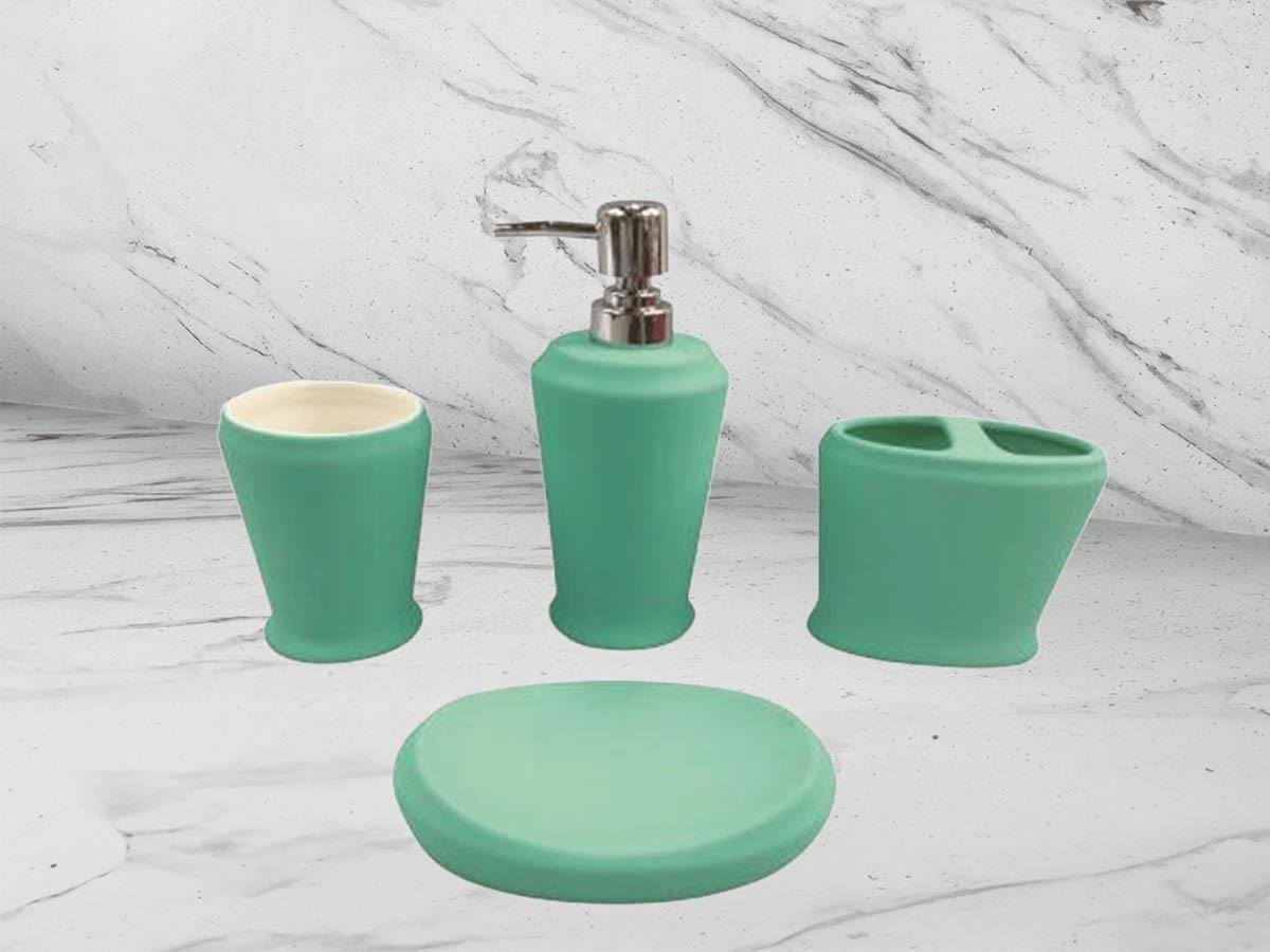 طقم إكسسوار حمام 4 قطع لون أخضر فاتح