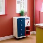 وتتميز بالتصميم الجذاب والأرفف المتعددة وباللون الأزرق الأنيق وتداخلات الأحمر و الأبيض الفاتن مما يزيد من جمالها وروعتها .