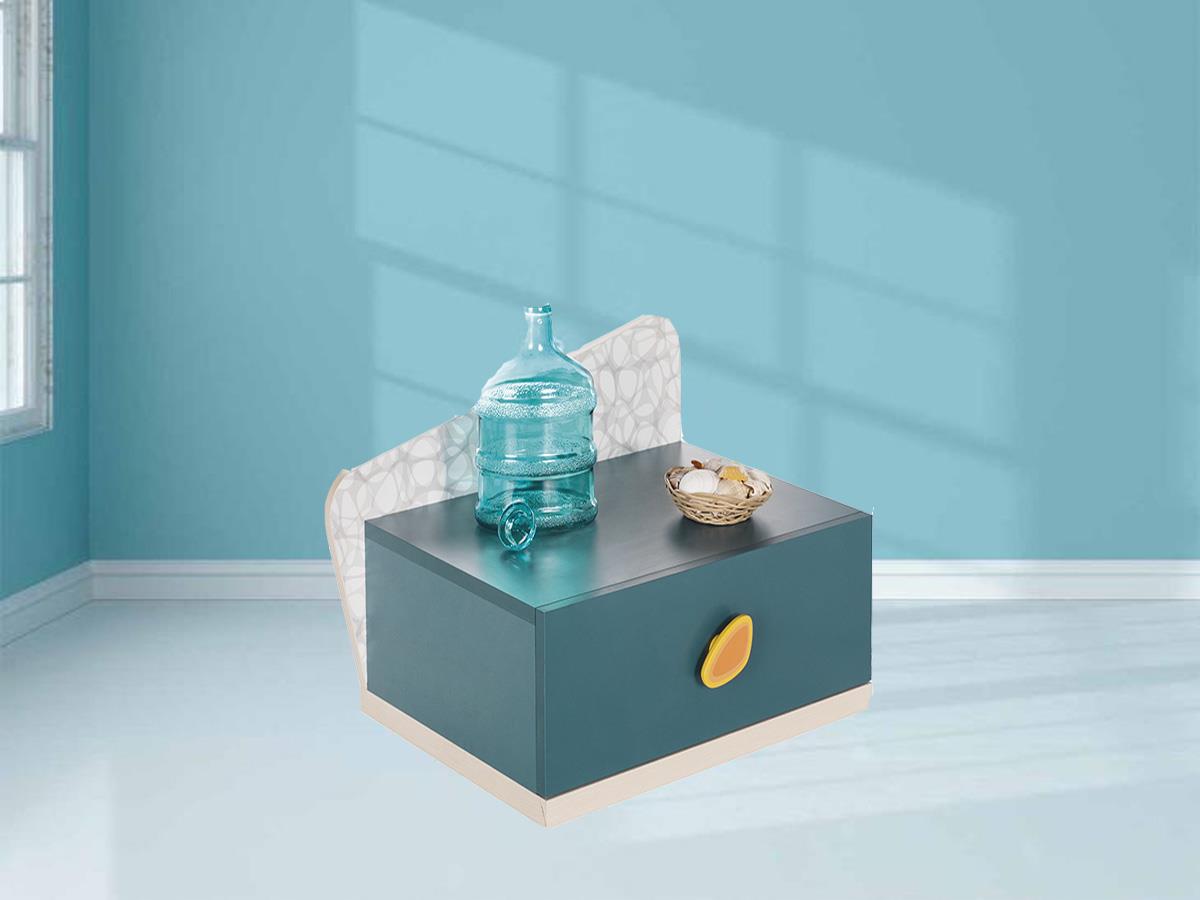 طاولة سرير جانبية بتصميم عصري مميز و باللون التركواز و الأبيض و بدون أرجل لضمان سلامة طفلك