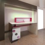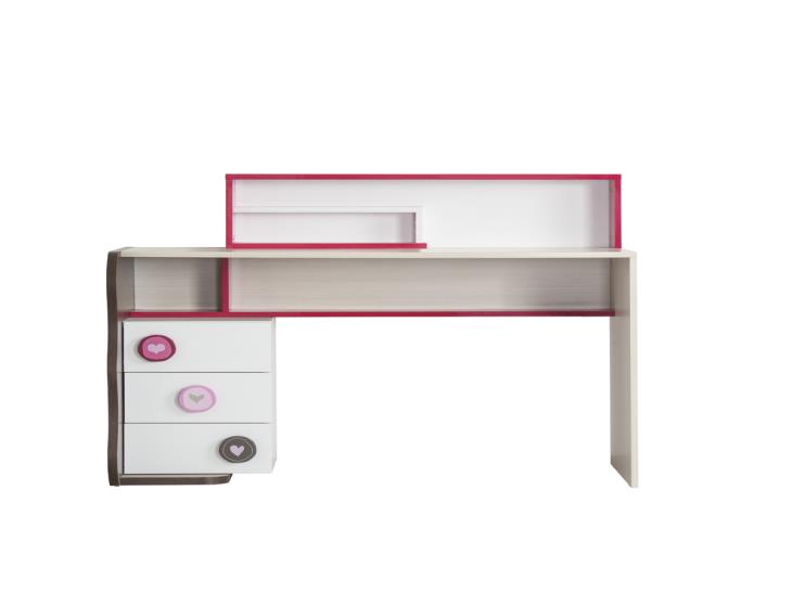 و رفوف مفتوحة لمساحة تخزين وتنظيم عالية ويتميز باللون المدمج بين الأبيض والزهري الساحر