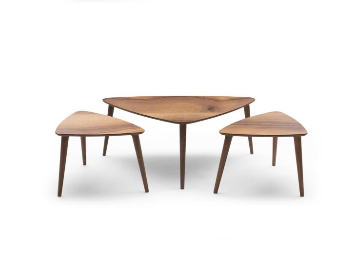 طقم طاولات خشبي بيراميت 3 قطع بني فاتح