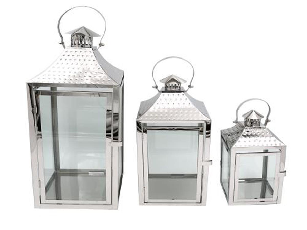 Lanterns set of 3 pieces, silver color Create a magical world in your home with this attractive set of lanterns consisting of 3 pieces of different sizes that suit your needs and space. It comes in a charming silver color, and is designed with a distinctive geometric shape and elegant details that add to its beauty and splendor.A distinctive modern piece worth owning.