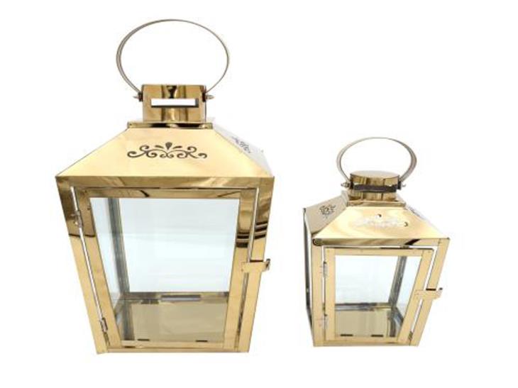 Lanterns set of 2 pieces, golden color Enhance the beauty and magnificence of your home, and distinguish the details of your elegant decor by choosing this distinctive set to be part of your elegant furniture, consisting of two pieces of different sizes to suit your needs and space, and designed with remarkable perfection and an attractive golden color, made of high quality materials, and with a glossy finish that gives it charm Remarkably, a distinctive piece that matches your taste and space.