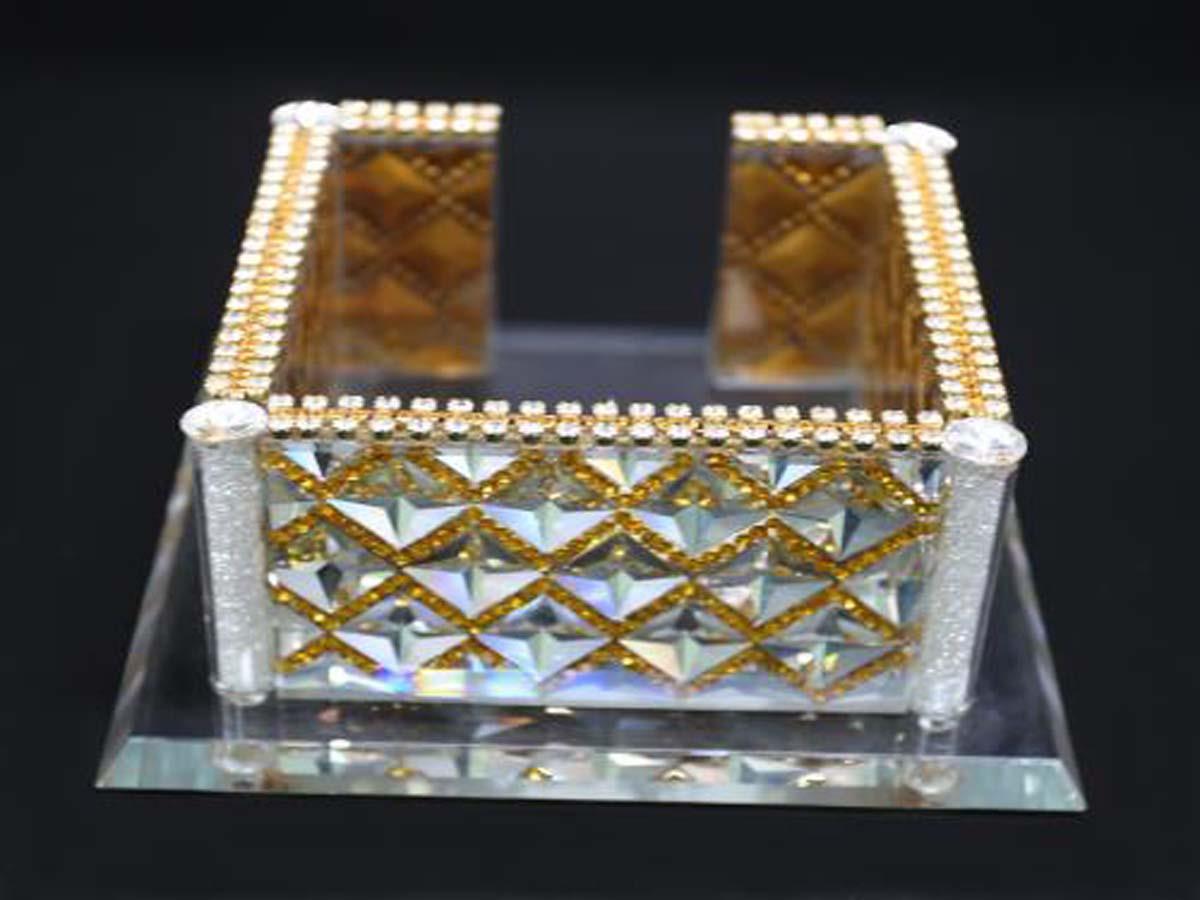 Gold color crystal paper box Distinguish your office table with this luxurious crystal piece, an elegant paper box with a distinctive crystal design, and golden details that increase its beauty and splendor to match your office decor. Craftsmanship and perfection to ensure durability and sustainability, an elegant and distinctive piece like no other.