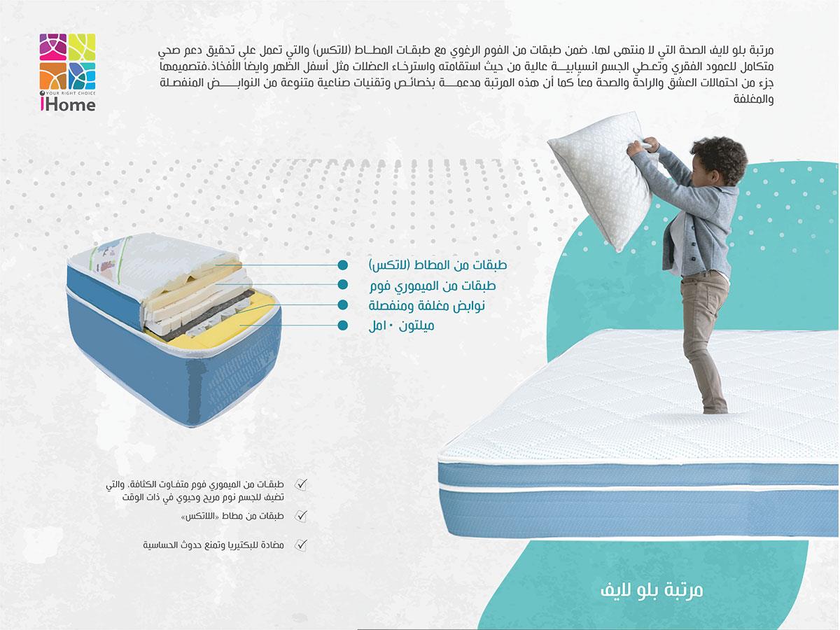 مرتبة بلو لايف الصحة التي لا مثيل لها في التصميم ضمن طبقات من الفوم الرغوي مع طبقات المطاط ( لاتكس )