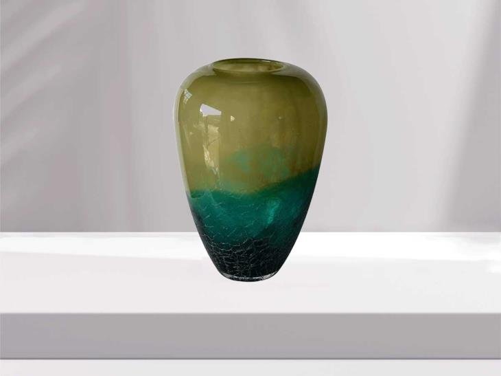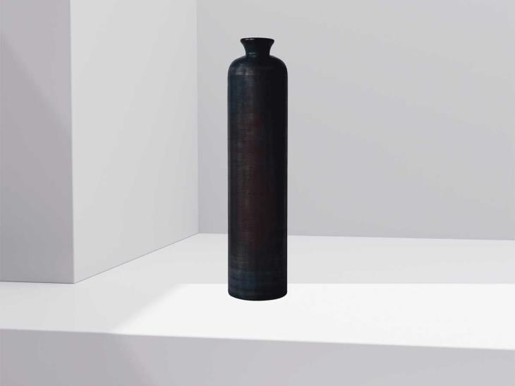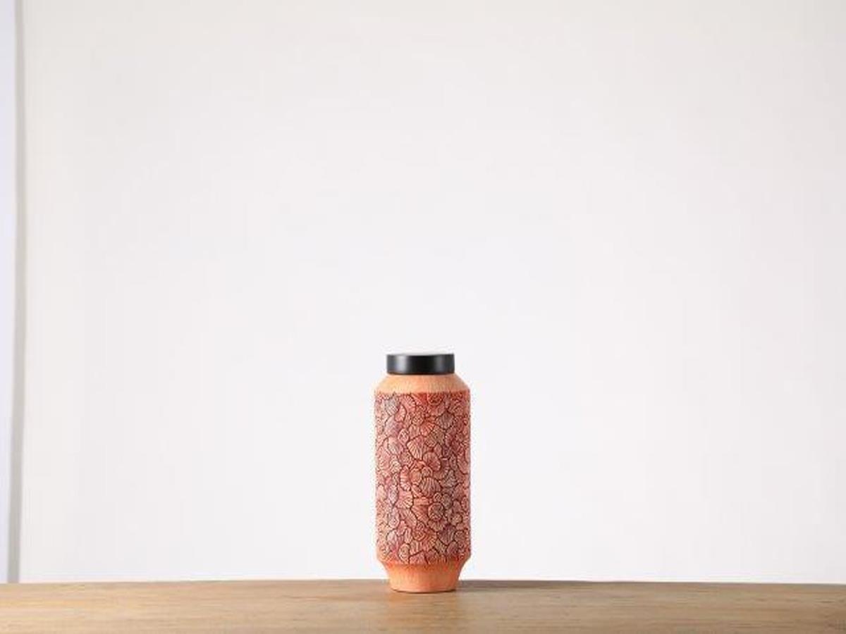 فازه بولوريزن شكل أسطواني بنقوش أزهار لون أورانج 35.5 سم