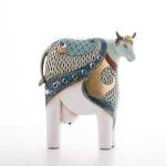 ديكور مجسم على شكل بقرة مصمم ومنقوش بطريقة جميلة وأنيقة بتفاصيل ذهبية غاية في الجمال ,