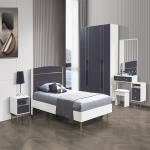 غرفة نوم هاندا مفرد 6 قطع سرير رمادي وأبيض