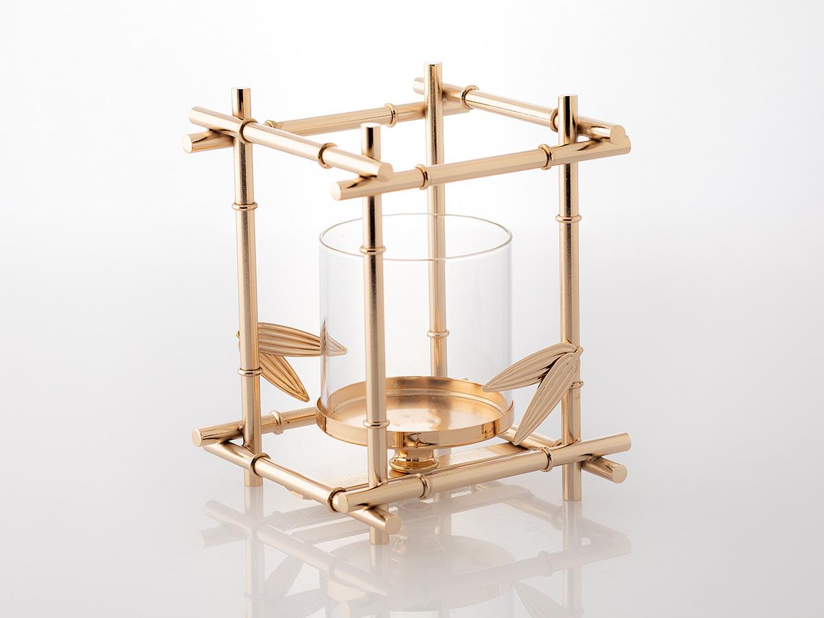 شمعدان من المعدن بقاعدة داخلية قابلة للحمل من الزجاج