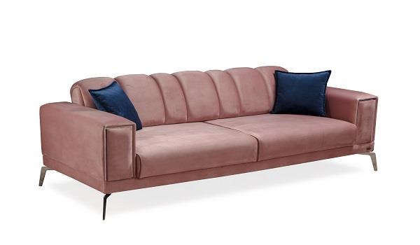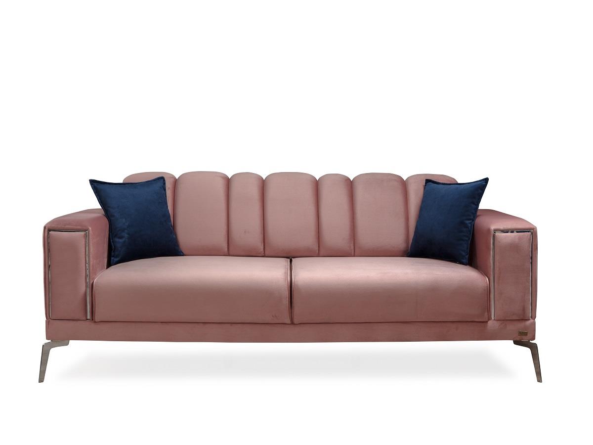 Lauren sofa set 4 pieces, pink and blue Renew the look of your home and add more beauty and elegance to your living room through this attractive setcomposed ofAn elegant velvet triple sofa in an elegant blue color + a triple velvet sofa in a glamorous pink color + 2 elegant single chairs in a distinctive pink colorMade of high-quality velvet fabric and attractive, eye-catching colors, with a fixed backrest withfoam and fiber filling, and silver steel legs with elegant details that add to its beauty and splendorComfortable and practical to immerse you in incomparable comfort, a distinctive piece worth owning.