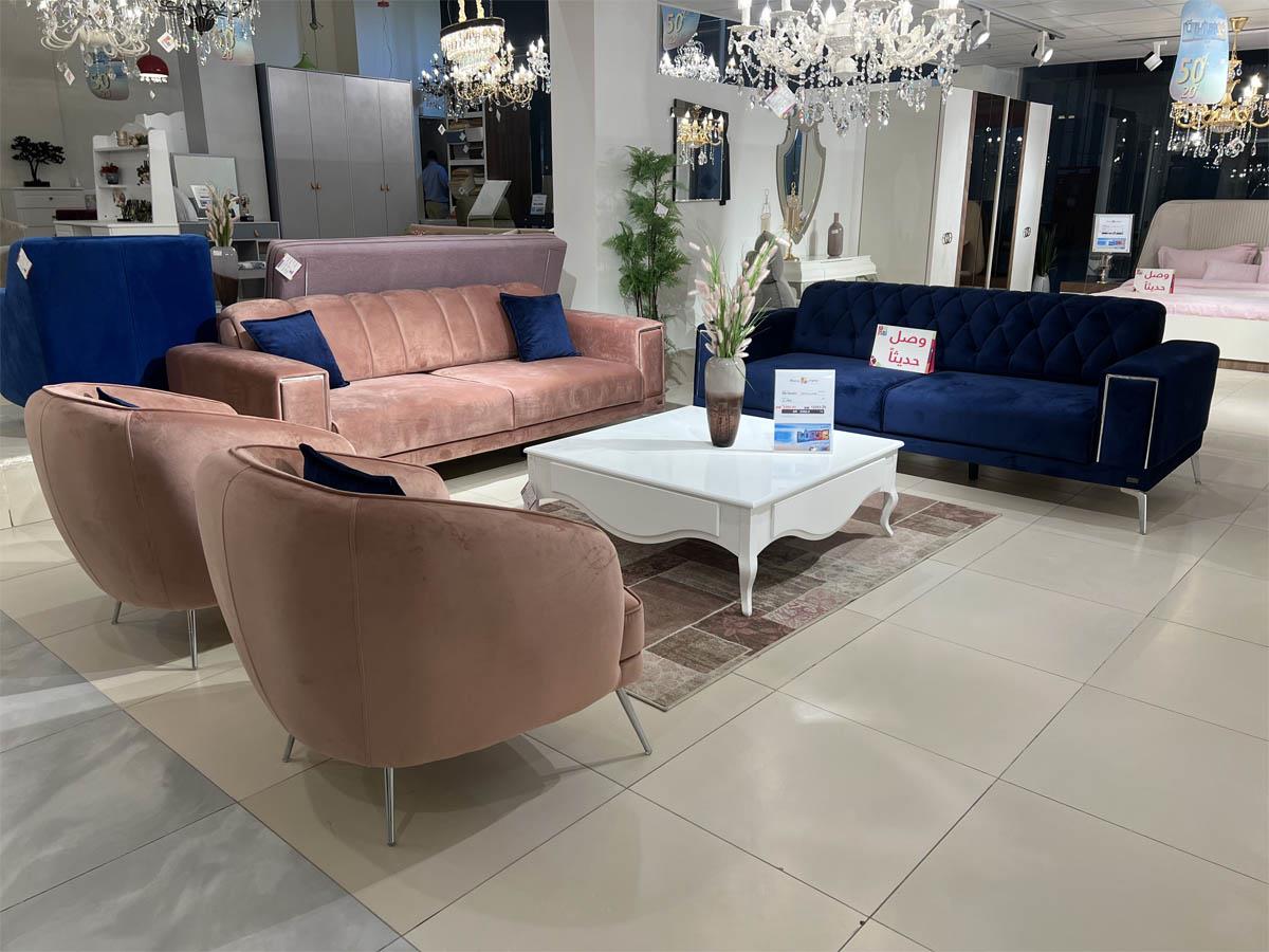 طقم كنب لورين 4 قطع لون زهري و أزرق