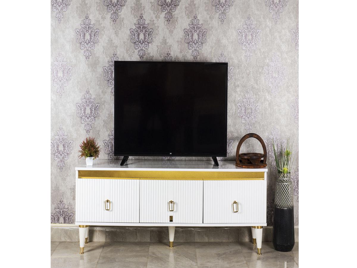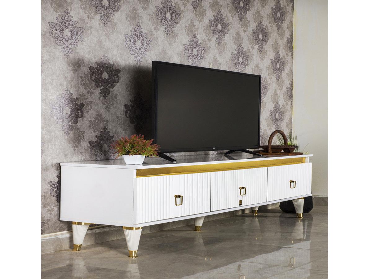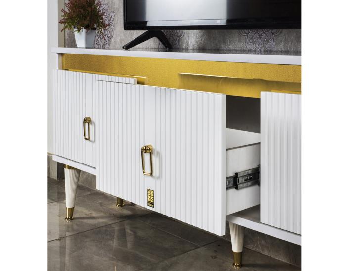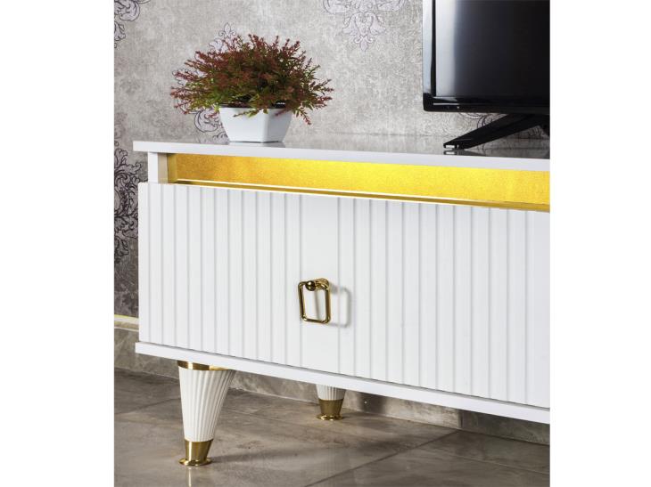 طاولة تلفزيون فلوغ 180 سم لون أبيض وذهبي