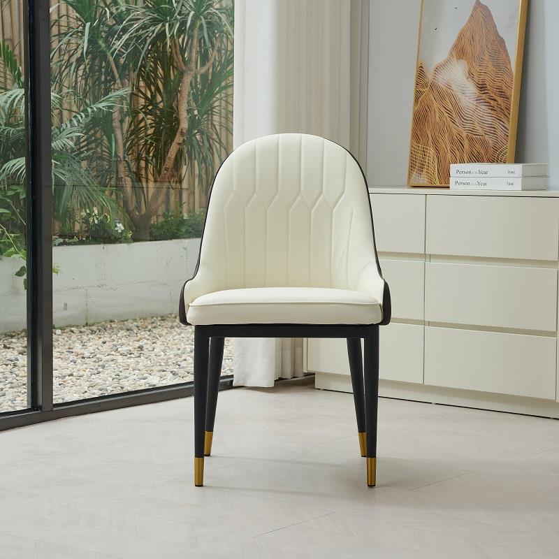 و 6 كراسي أنيقة باللون ألكريمي الفاتن بتنجيد من الجلد الأسود الصناعي